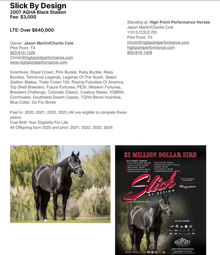 STALLIONS FOR OUR 2023/2024/2025 FOAL CROPS!